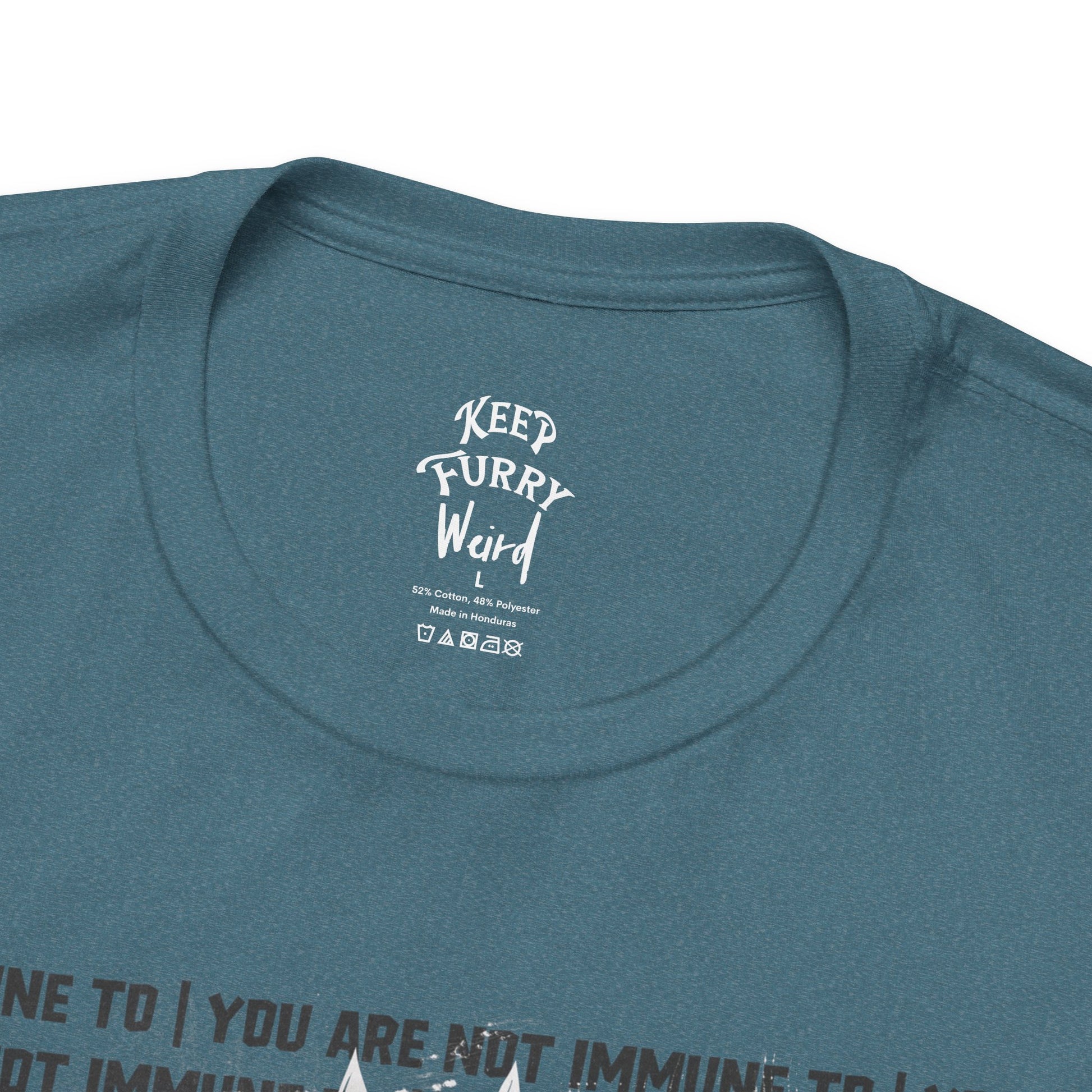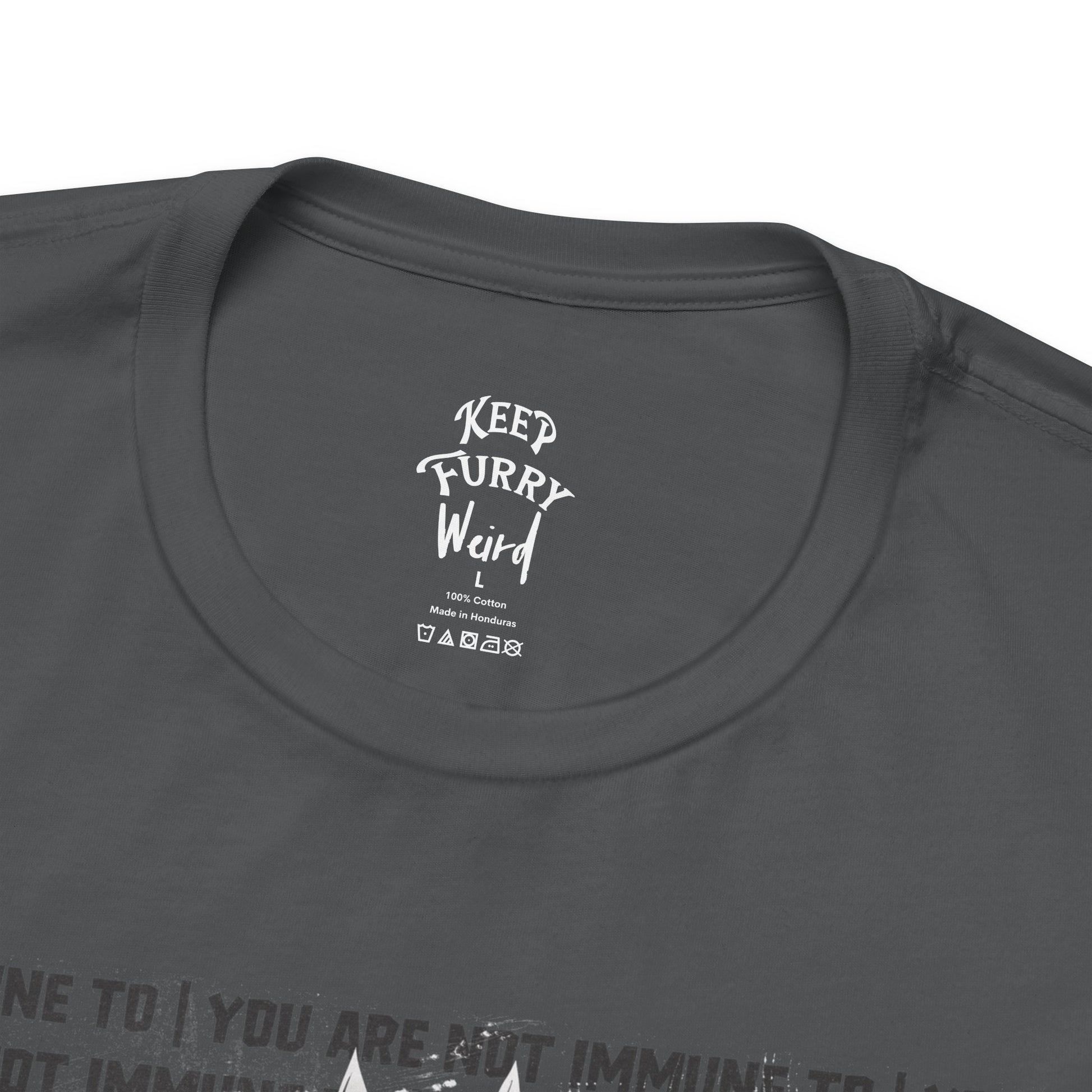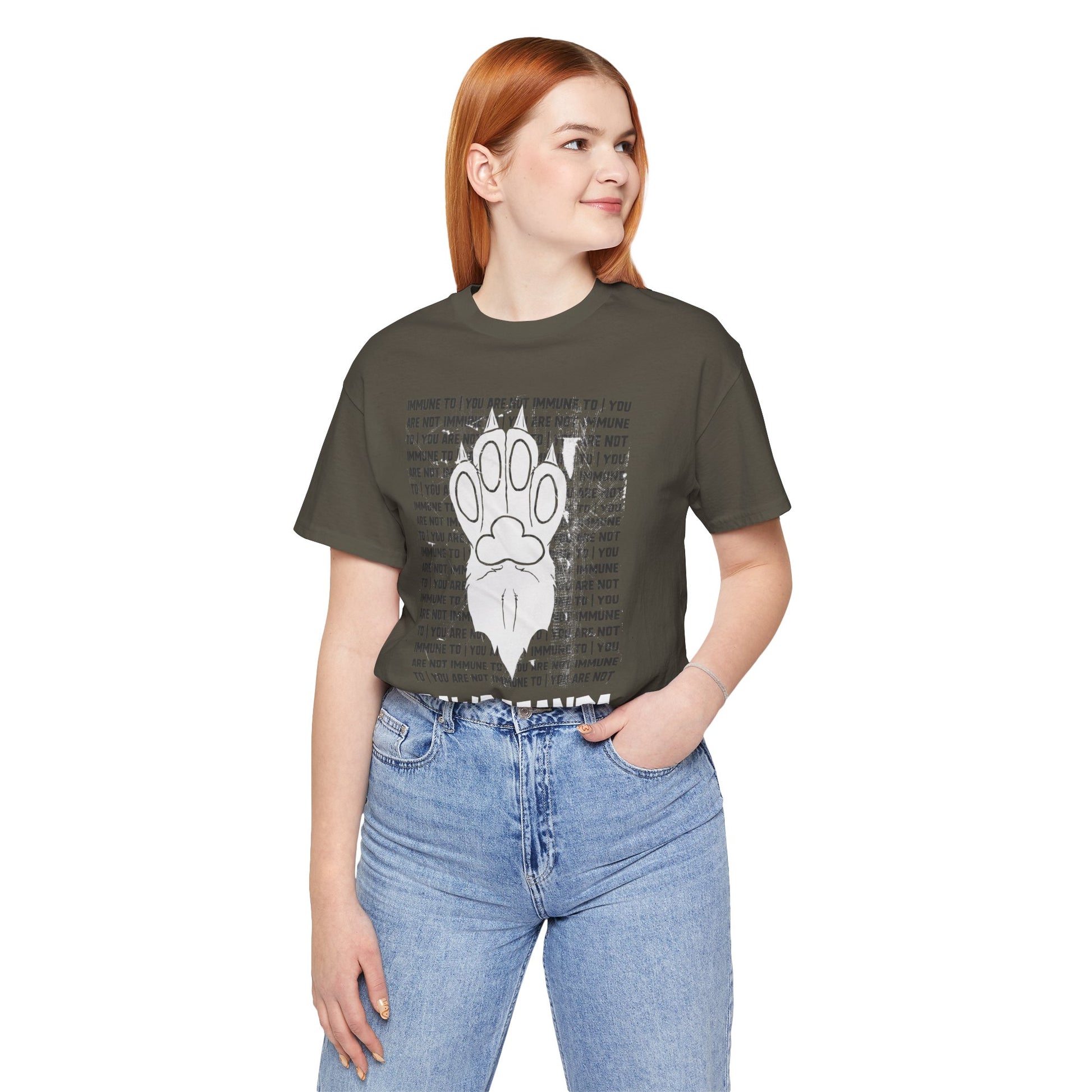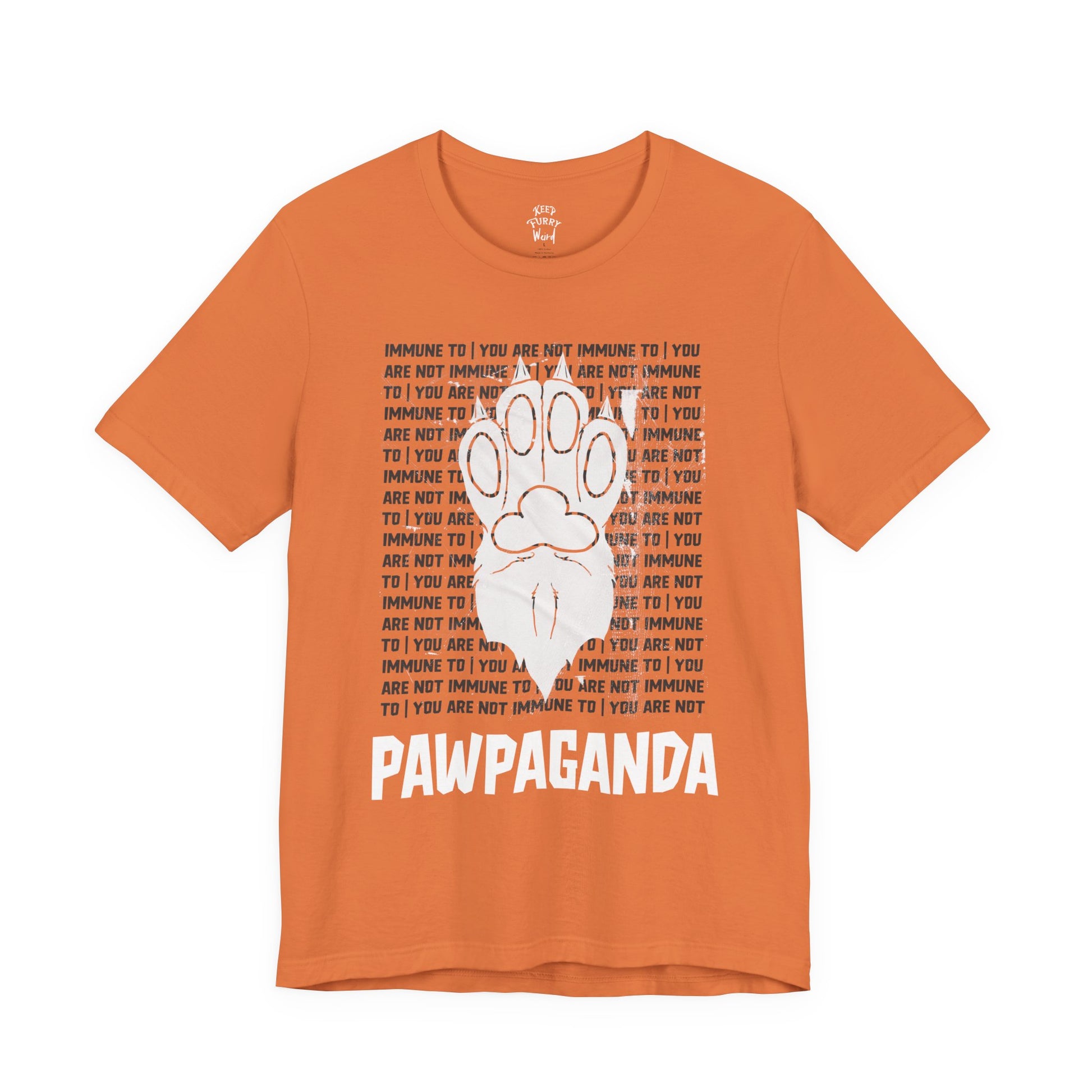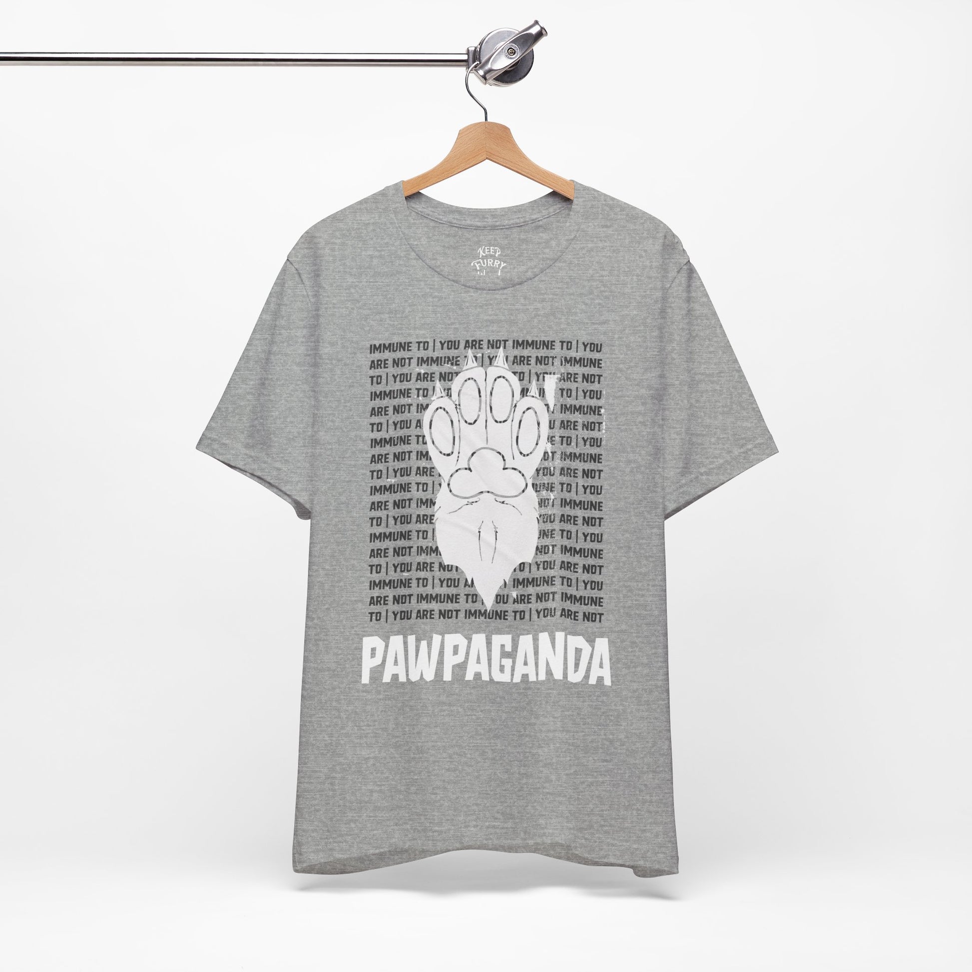 You are not immune to the Pawpaganda. Designed by AJ, this striking tee blends old-school propaganda aesthetics with furry humor. Are you ONE OF US?!
